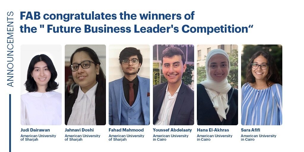 أبوظبي، 11 نوفمبر 2022: أعلن بنك أبوظبي الأول، أكبر بنك في دولة الإمارات العربية المتحدة وأحد أكبر وأأمن المؤسسات المالية في العالم، اليوم عن أسماء الفائزين في مسابقة قادة أعمال المستقبل، التي تم إطلاقها في دولة الإمارات العربية المتحدة وجمهورية مصر العربية، لإتاحة المجال أمام الطلاب من البلدين لتقديم رؤاهم وتطلعاتهم حول دور قطاع الأعمال في دعم أجندة الاستدامة على المستويين الوطني والعالمي مستقبلاً.