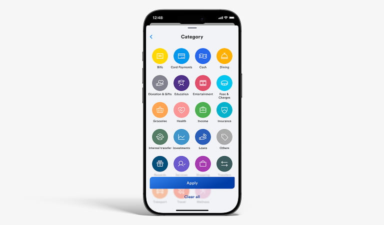 يتم تصنيف كل دفعة تلقائياً ضمن واحدة من 23 فئة إنفاق مثل البقالة، المطاعم، أو المرافق. إذا تعذّر مطابقة المعاملة، ستظهر ضمن فئة أخرى. يمكنك تعديل الفئة بنفسك، وسيقوم التطبيق بتذكّر اختيارك للمعاملات المستقبلية.