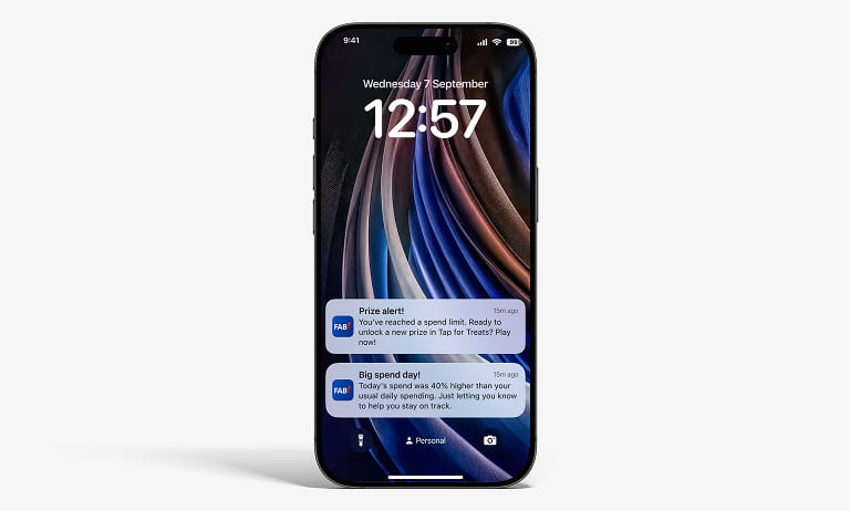 هذا بالضبط ما يقدمه لك تطبيق FAB Mobile. ستحصل على تنبيهات مخصصة تساعدك على اتخاذ قرارات ذكية: متى تدخر، ومتى يكون من المقبول أن تنفق قليلاً أكثر.اطّلع على الأسئلة الشائعة لمعرفة الإجابات التي تبحث عنها