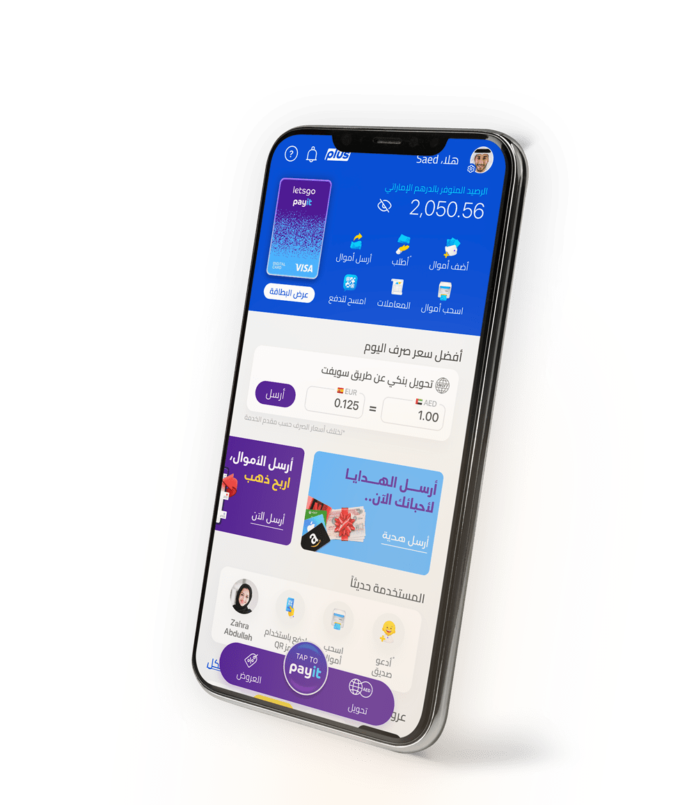 استمتع بتحويل رصيد الراتب مباشرةً إلى حساب Payit Plus واستكشف الخدمات المصرفية الرقمية من هاتفك الذكي.