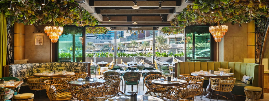 The Blume offers a lush escape with Mediterranean and global flavours, set amidst tropical greenery and vibrant floral displays for a truly relaxing treat.