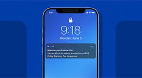 We’ve eliminated the need for SMS and email OTP, which are susceptible to fraud and scams. Our new app-based authorisation puts you firmly in control of your online transactions. When you initiate an online transaction, you will receive an immediate notification on your FAB Mobile app. Tap the notification to approve the online transaction.