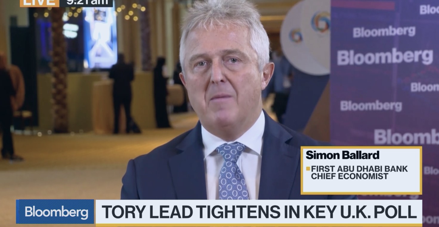 Simon Ballard, chief economist at First Abu Dhabi Bank Pjsc, talks about this week’s U.K. election, the Brexit negotiations and the implications for markets. He speaks from the sidelines of the SALT conference in Abu Dhabi with Manus Cranny and Yousef Gamal El-Din on "Bloomberg Daybreak: Middle East." (Source: Bloomberg)