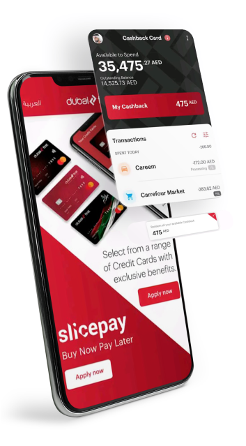 Apply for your SlicePay Card instantly on the Dubai First Mobile app